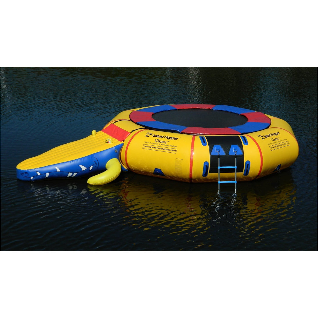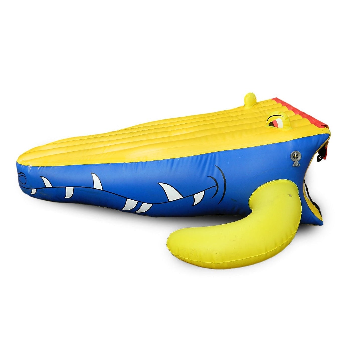 The Island Hopper® Gator Monster Head Slide attachment can be installed to almost any water bouncer or water trampoline that is up to 36” high. It is made using 1000 denier mesh reinforced PVC material with an advanced UV coating. The interior consists of a honeycomb cross member structure for load bearing strength and integrity. When connected to a water bouncer or water trampoline, it will add stability and increase the load capacity by 400 lbs. The Gator Monster Head Attachment comes with a carry bag, repair kit, valve adapter and instruction manual. Installs on most any water bouncer in minutes.