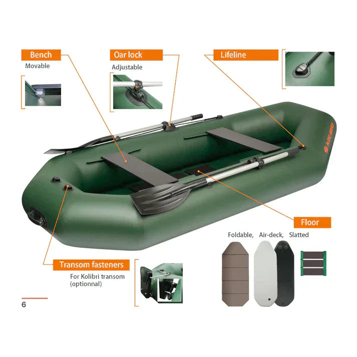 The Classic series of Kolibri inflatable boats contains rowboats up to 3 meters in size, as well as different choices of floors and colors.